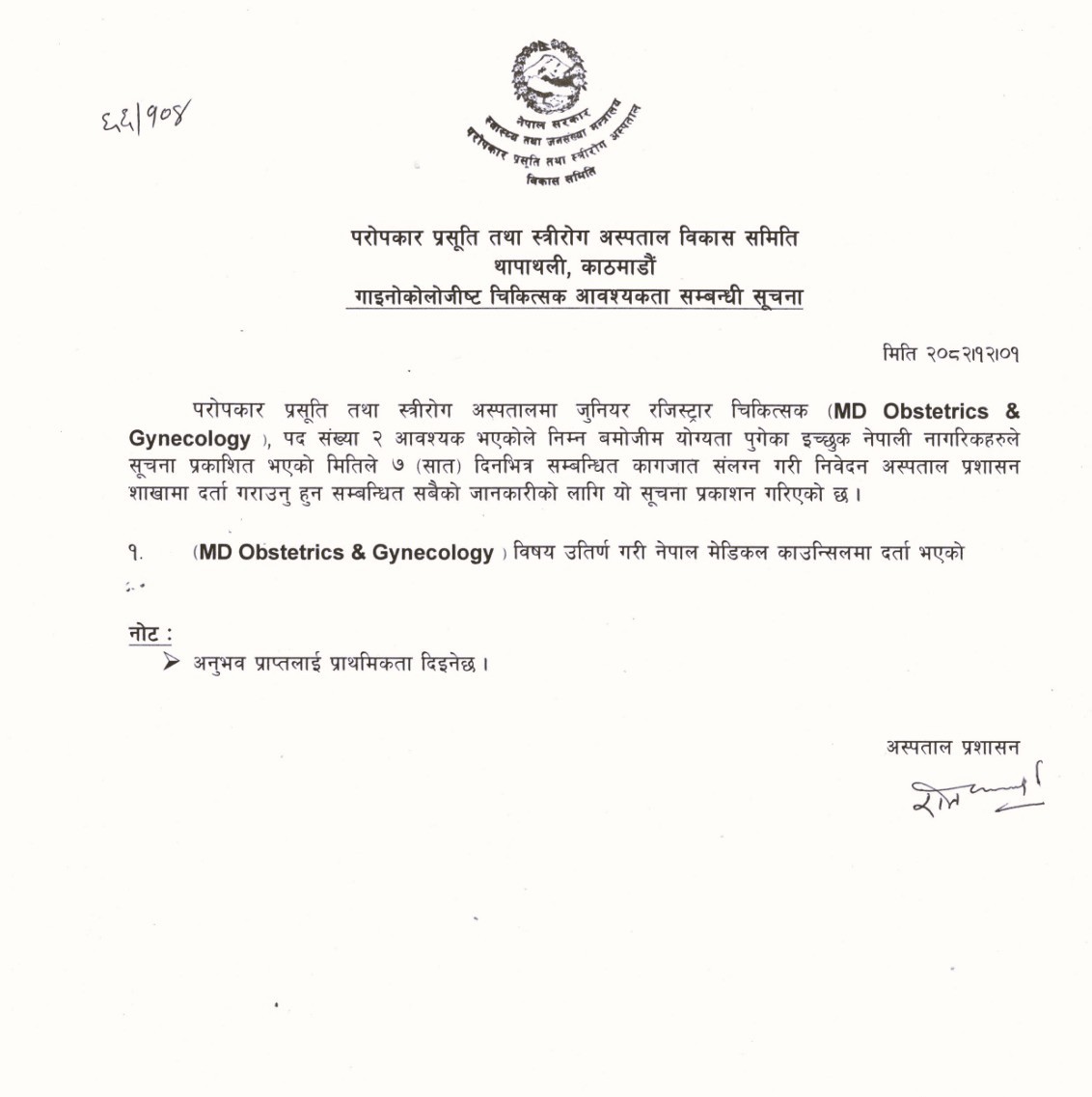 नयाँ जानकारी / सूचना (Recent News) Document Archieve S.N. Title View Download Vacancy Notice for Obstetrics and Gynecology 1 Vacancy Notice for Obstetrics and Gynecology View Download